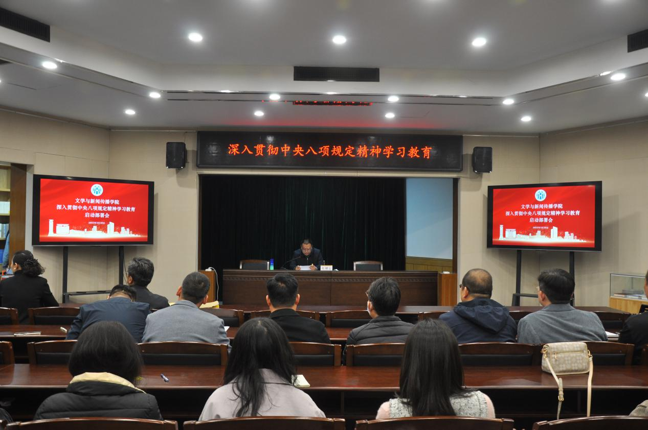 3月20日下午,我院于诗学讲堂正式启动深入贯彻中央八项规定精神学习教育。会议由学院党委书记杜啸尘主持,院长张超、副院长邢楠楠及全体师生党员参加会议。