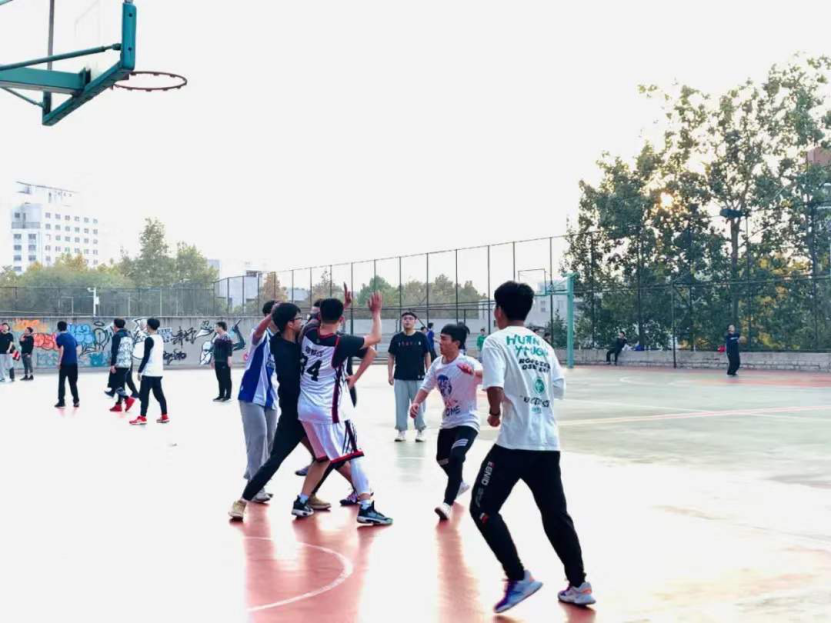 开场哨声一响,双方立刻全身心投入到此次比赛中。文管一班李振鲁同学率先投中一个两分球,场上形势逐渐紧张。随着时间的推进,团队配合度不断提升。紧接着,汉语言一班的李慧远同学利用身体优势不断打内线得分,赛场上的精彩表现赢得场外一阵欢呼声。