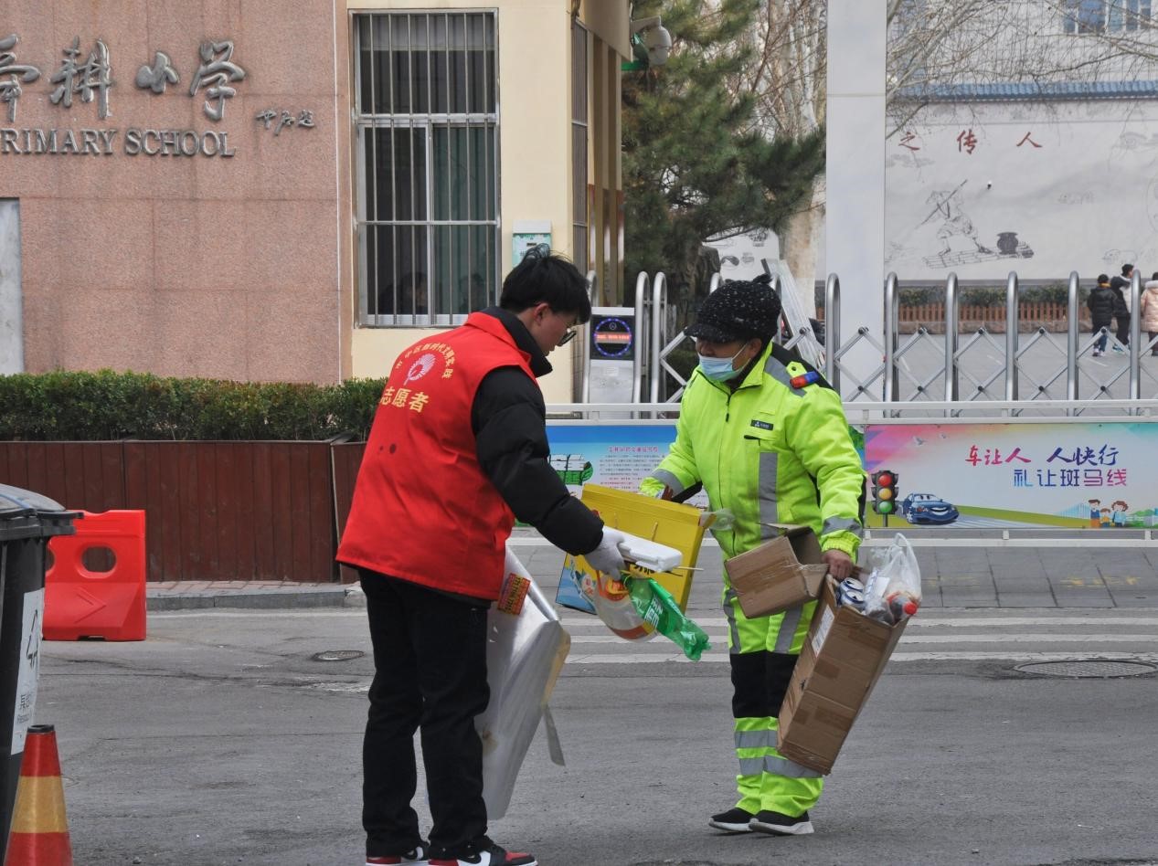 践行雷锋精神,守护整洁社区。志愿者们抵达社区服务中心后,活动负责人带领大家领取清洁工具和志愿者马甲。为保障志愿服务的顺利进行,在社区管理人员的配合指示下,志愿者们分为两组。第一小组志愿者用刮刀等清洁工具,对楼道内的小广告、泥漆等进行深度清理;第二小组志愿者则负责清理社区及楼道垃圾,并对其进行垃圾分类,同时将各层居民的无用物品搬出楼道。