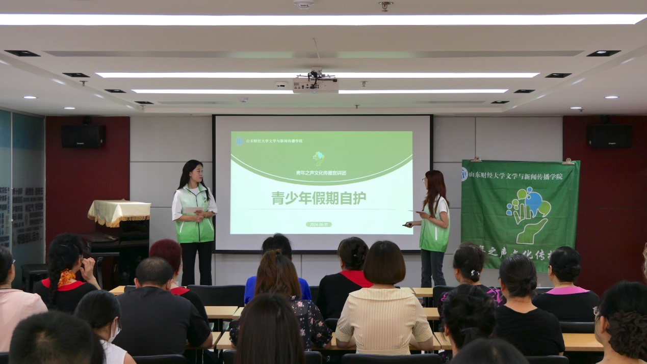 为了提高家长对青少年的自护教育的重视程度,进一步提升青少年的公共礼仪素养,营造一个和谐、文明的社区环境,6月17日上午,我院青年之声文化传播宣讲团来到市中区舜函社区开展了“青少年假期自护”主题宣讲。宣讲团成员朱丽菊、徐静、袁婧宜、于芮等担任宣讲人。