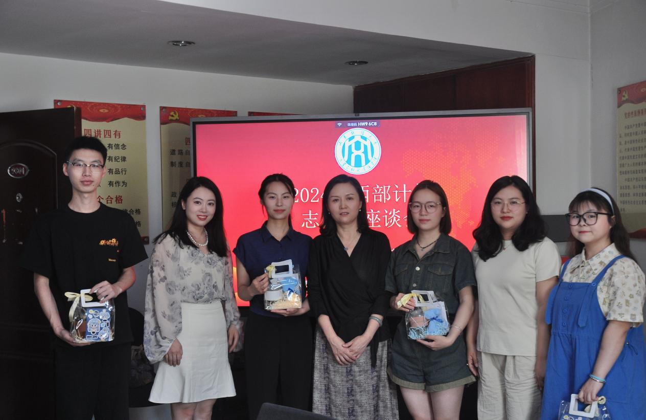 为积极响应国家号召,大力弘扬志愿服务精神,进一步推动西部计划的深入开展,6月19日上午,我院在干训楼9301会议室成功举办2024年西部计划志愿者座谈会。学院党委副书记王恩娟、团委书记杜淑艳、辅导员边慧及学院2024年西部计划志愿者共同参与此次活动。