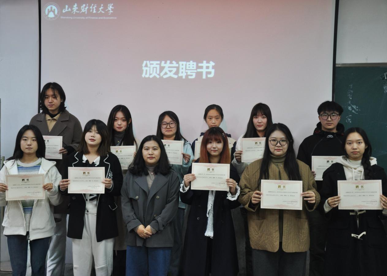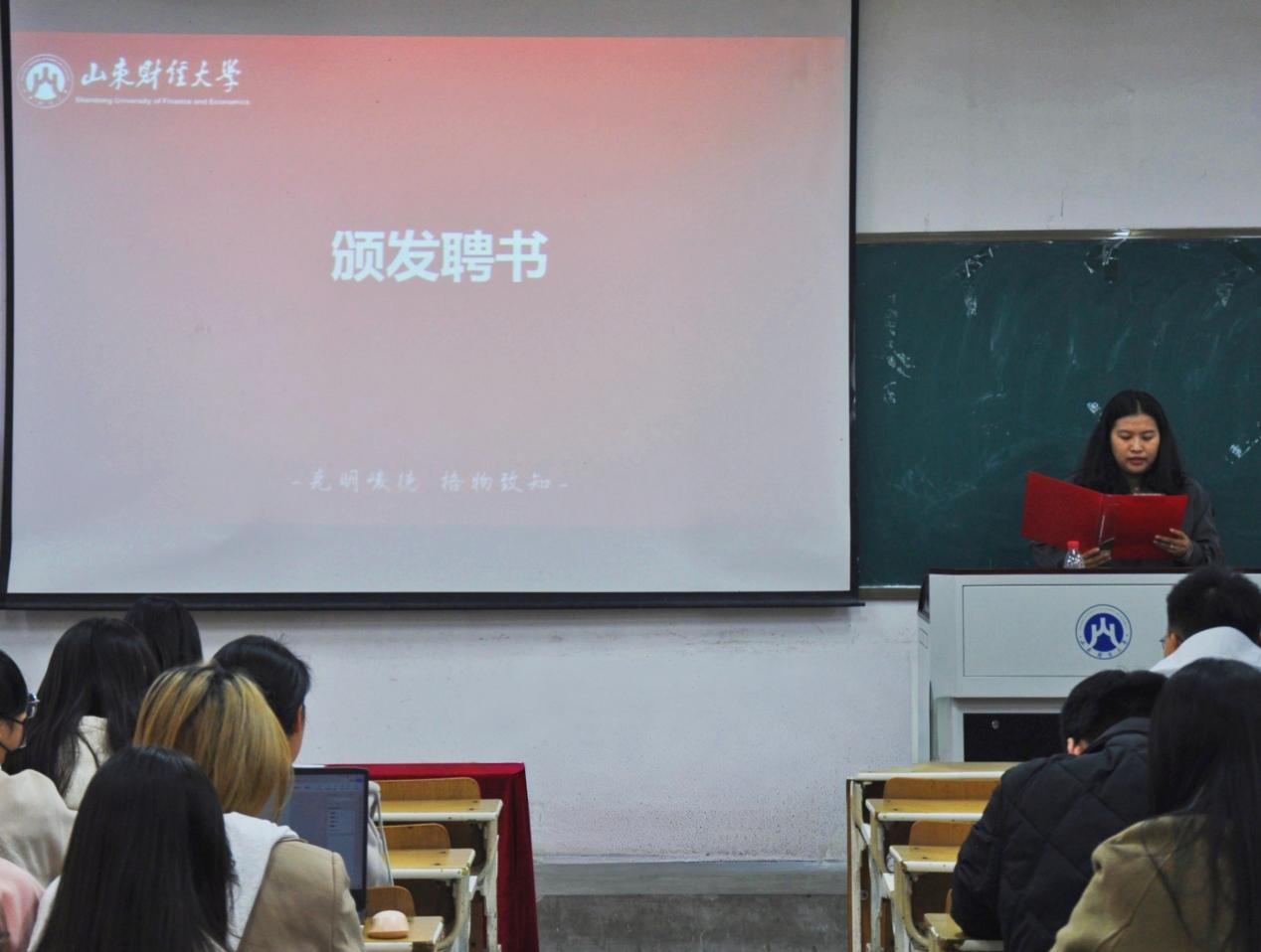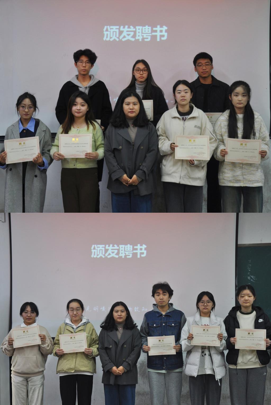 王恩娟为学生会主席团颁发聘书,杜淑艳为学生会部长、大学生自我管理与发展委员会部长颁发聘书。