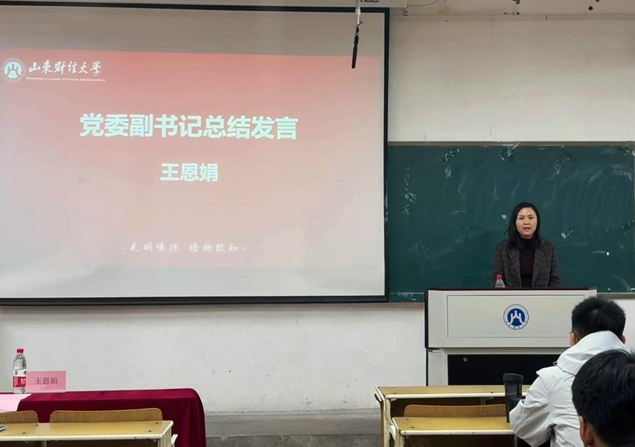 随后,王恩娟进行总结发言。她代表学院向2023届学生会成员表示感谢,并对全体学生会成员提出以下几点期许:一要坚定理想信念,牢记初心使命;二要加强团结协作,牢固树立大局意识、团结意识;三要推进个人成长,提高个人能力。希望同学们珍惜时光,以饱满的热情和坚定的信念投入到工作和学习当中,在奋斗中超越自我,再创佳绩。