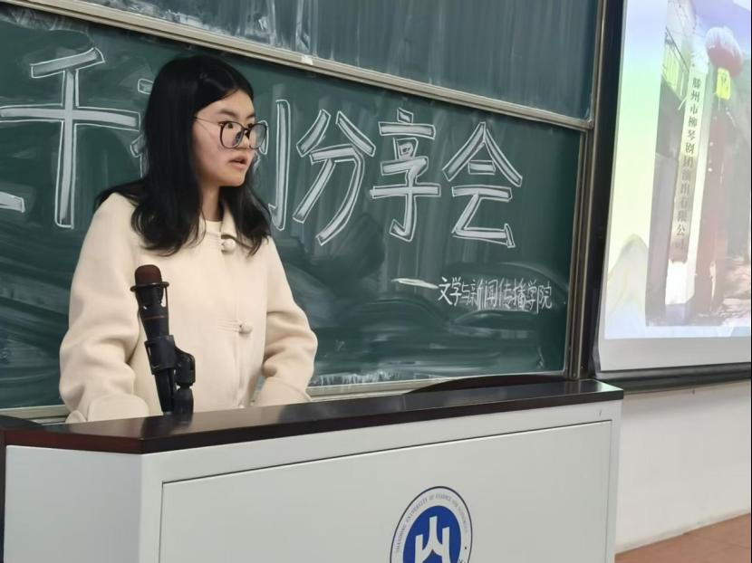 分享会伊始,23级汉语言文学一班陈意茹介绍了“三千计划”项目需要做的前期准备,要确定选题,组队,撰写立项书以及实地调研准备。接着陈意茹学姐分享了一些实地调研阶段的图片,她们深入山东枣庄市滕州市柳琴戏研究保护中心,滕州博物馆,墨子与鲁班纪念馆走访,为项目成果搜集了足够材料。最后,她提出在成果总结阶段,要做好资料备份和保存工作,利用新媒体等现代技术对传统文化进行宣传。除此之外,她还鼓励同学们多询问老师,学长学姐们,希望同学们积极参与到“三千计划”这个大平台中。