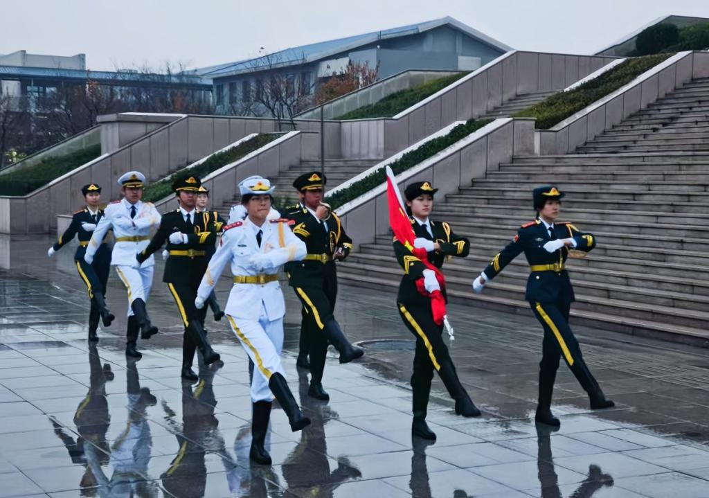 清晨七时整,升旗仪式正式开始。国旗护卫队迈着铿锵有力的步伐走向国旗台。在庄严的国歌声中,五星红旗冉冉升起,全体师生面向国旗庄严肃立,行注目礼并齐唱国歌。