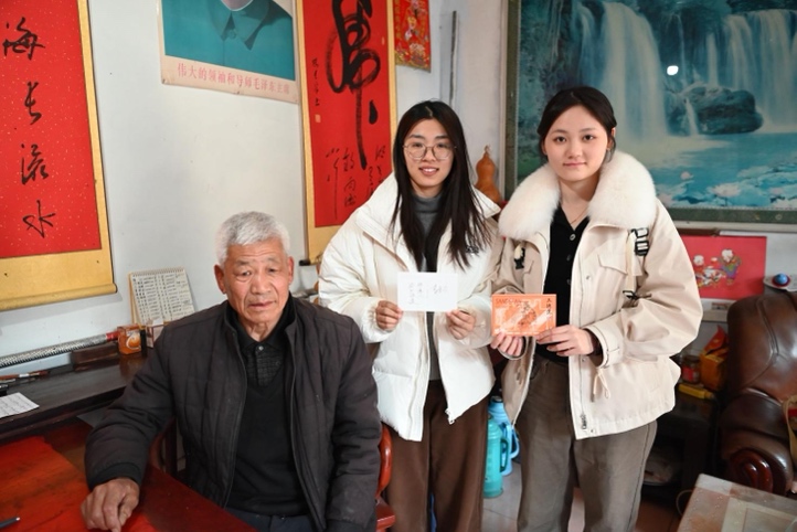 调研团队向非遗传承人赠送自主设计文创产品,传承人向团队提出改进建议