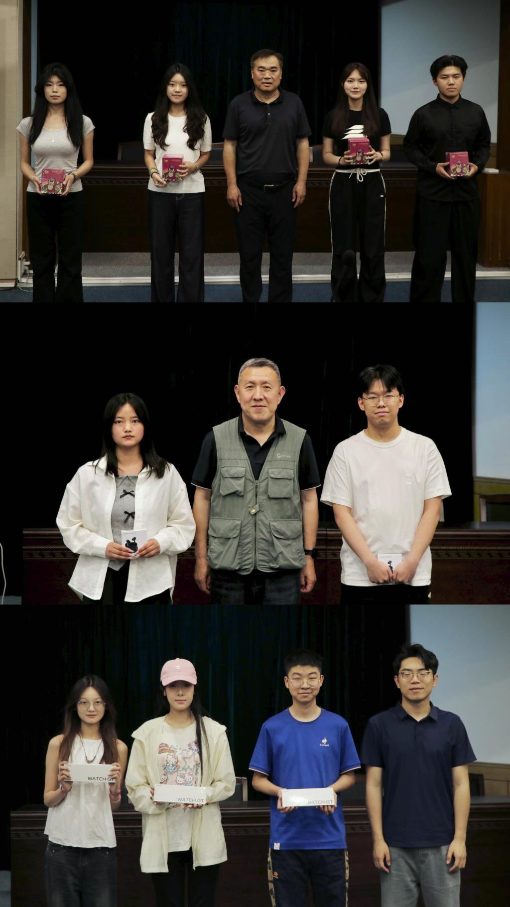 颁奖环节,现场气氛隆重热烈。王帅、韩军、陈海依次为三等奖、二等奖、一等奖获得者颁发荣誉证书及奖品,并与获奖学生代表合影留念。嘉宾对学子以影像记录校园之美的创作热情予以充分肯定,并鼓励其持续探索艺术,以艺术实践为纽带,在文化传承与个人成长中实现双向赋能。