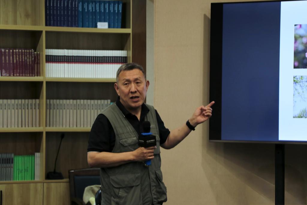 随后,韩军教授受邀上台,从构图法则、光影运用、叙事逻辑等维度对获奖作品进行深度剖析,并分享摄影技巧。他鼓励学子以技术为基、以人文为魂,深化对校园文化的审美感知与艺术诠释。