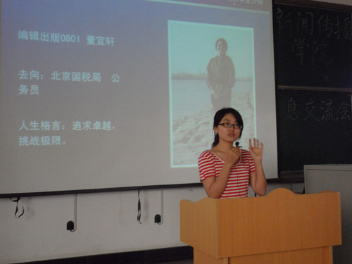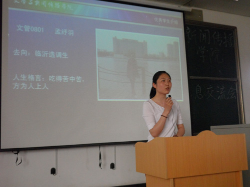 5月24日下午,文学与新闻传播学院“就业信息交流会”在明水校区3201教室隆重举行。出席本次交流会的嘉宾有辅导员周娜以及在各项就业考试中取得优异成绩的08级毕业生。他们分别是编辑出版专业马一萍、董宜轩,文管专业王雅琪、辛骁、孟纾羽、张璞,广告专业李亮等。本次活动旨在为有意报考研究生、公务员等选拔性考试的同学介绍更多笔试以及面试的经验,提前为就业做好准备。我院2010级200余名学生参加了交流会。