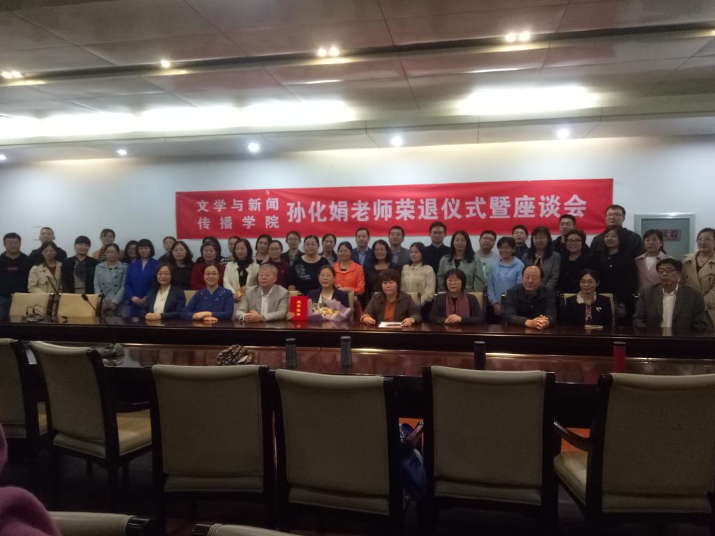 10月24日下午,文学与新闻传播学院为孙化娟老师举办了一个庄重又温馨的光荣退休仪式。院长孙丽君、前任院长孙玉太、副院长牟雷以及文学院全体职工参加了这一仪式。院长孙丽君、前任院长孙玉太在致辞中高度评价了孙化娟老师兢兢业业的工作态度和丰硕的教学科研成果。学生代表向孙化娟老师献花致谢,孙化娟老师也发表荣休感言,感谢学院领导的关怀,表达对文学院的眷恋。郭新洁、张洋等教授都深情回忆了与孙化娟老师的共事经历,其他老师也都纷纷表达了对孙化娟老师的祝福和不舍之情。整个仪式场面温馨感人。