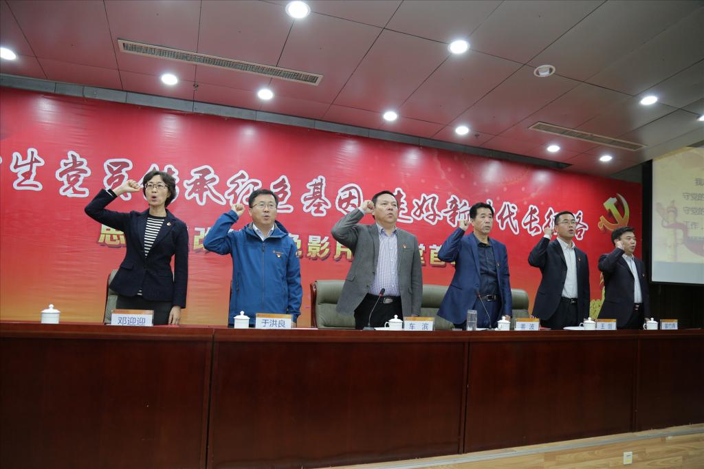 首映式开始,由车滨主持并宣布“传承红色基因 走好新时代长征路”系列活动开始,王剑介绍了此次活动安排。随后,大学生党员代表签订承诺书,全体党员重温入党誓词,国际经贸学院学生党员代表发言,我院学生党员代表孙雯雯发表讲话。紧接着,姜波讲话,他从红色基因的丰富内涵和时代特征等方面阐释了高校开展红色基因传承教育的必要性和深远意义,提出了提高认识、精心组织、教学渗透、注重实效等四个方面的要求,并且希望学校全体党员都能认真体会落实,长期坚持,不断锤炼党性,提升素养。随后,主席台领导到观众席指定位置落座,全体党员共同观看影片《诞生地》。