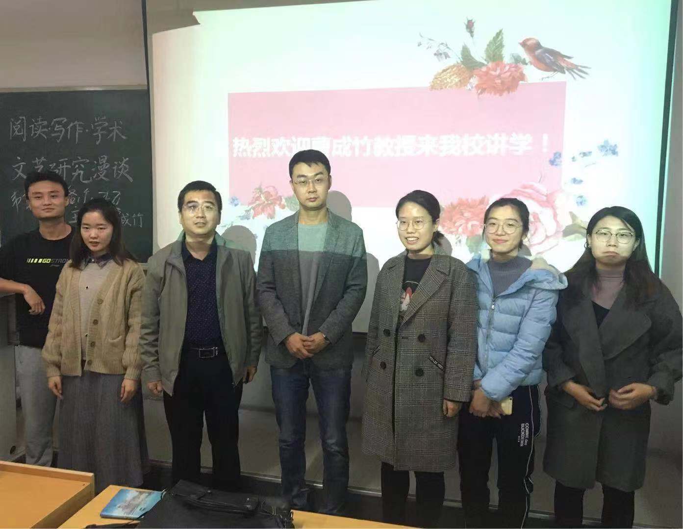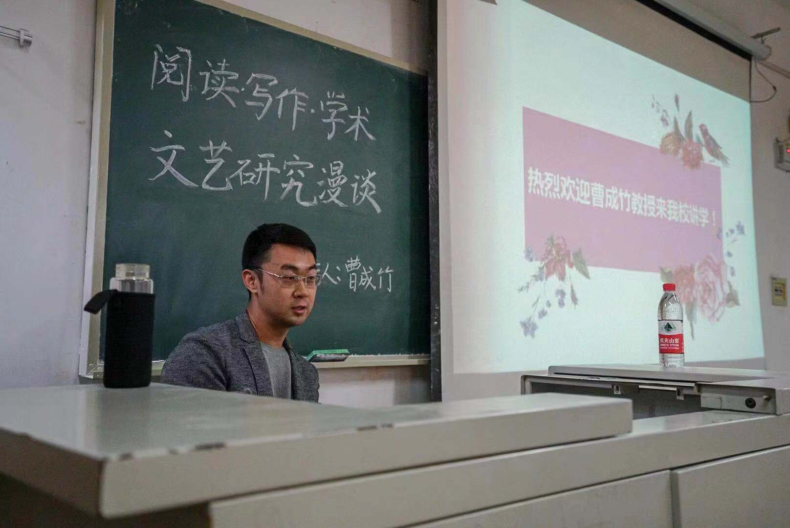 11月1日下午2:00,我院在舜耕校区1307教室举办《阅读,写作,学术:文艺研究漫谈》主题学术讲座。本次讲座由山东大学文学院文艺美学研究中心副教授、博士生导师曹成竹老师主讲,我院中文系主任于志鹏老师主持,汉语言文学专业15、16级同学一百多人参加了讲座。