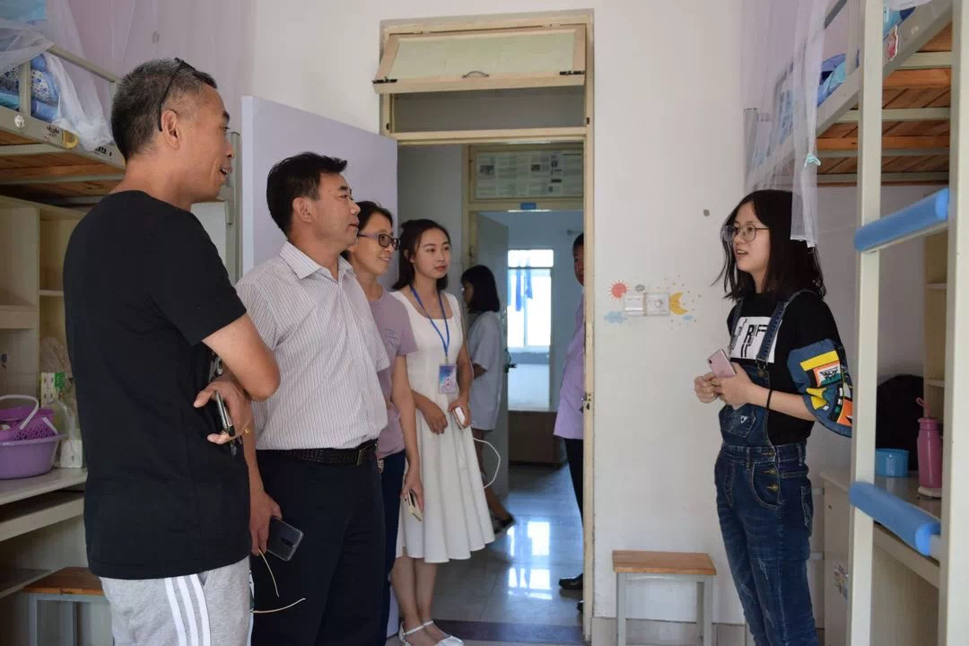9日中午11时许,学院党委书记姜竹青、党委副书记李开传、团委书记沙林斌以及2018级本科生辅导员李霞来到了圣井校区的C4学生宿舍,充分了解新生的入住情况。姜竹青书记与同学及家长亲切交流,他向同学们简单介绍了宿舍及学校的周边情况,并表示希望建立家长与学校之间更为通畅的沟通渠道,加强“家校”合作,更好地保证学生的在校安全。李开传副书记提醒同学们要加强安全意识,谨防电信诈骗,注意人身及财产安全问题,强调如果有困难一定要及时与辅导员联系。