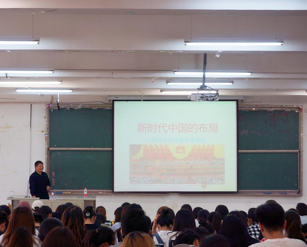 4月2日,“新时代中国的布局——两会精神辅导”讲座如期在学校圣井校区举行。本次讲座邀请了学校马克思主义学院王广老师主讲。文学与新闻传播学院党委副书记董瑞华、辅导员周娜、史卉老师以及学院16、17级学生参加。