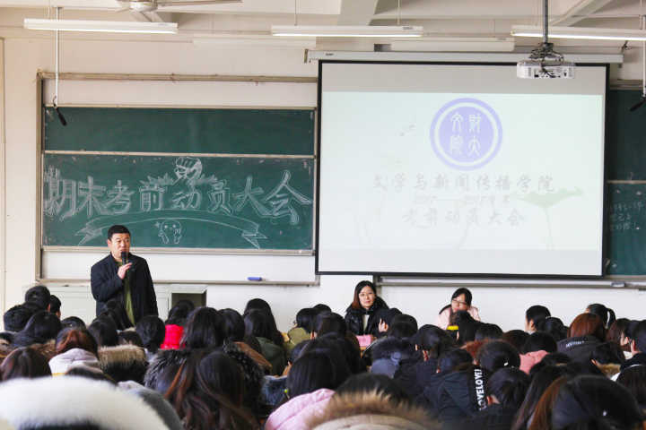 1月11日,文学与新闻传播学院第25届读书活动表彰交流暨考前动员大会在舜耕校区举行。我院院长孙玉太、党委书记赖昭瑞、副院长牟雷、团委书记李开传以及郑燕老师和李劲松老师出席了舜耕校区的大会。2016级及2015级部分学生参加,大会由副院长牟雷主持;出席圣井校区考前动员大会的有党委副书记董瑞华、16级辅导员周娜、17级辅导员鞠洪伟,2017级全体学生以及部分2016级学生。