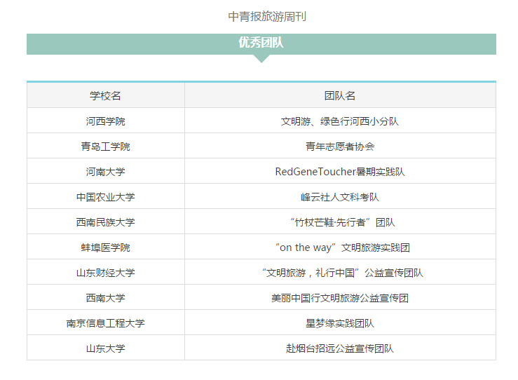 近日,由国家旅游局主办,中国青年报社承办的2016“大学生文明旅游背包行”公益宣传活动评选出优秀团队和优秀传播奖,山东财经大学文学与新闻传播学院“文明旅游,礼行中国”公益宣传团队获优秀团队奖,本次活动最终仅有十支团队获此奖项。