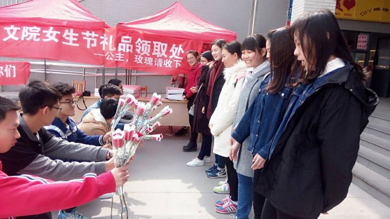 为了丰富我院大学生的校园文化生活,增强学生之间互相尊重与平等交流的观念,我院学生会于第二餐厅门口以自己的方式迎接了3月7日的女生节,主办了专为女同学献花送祝福的创新福利活动。