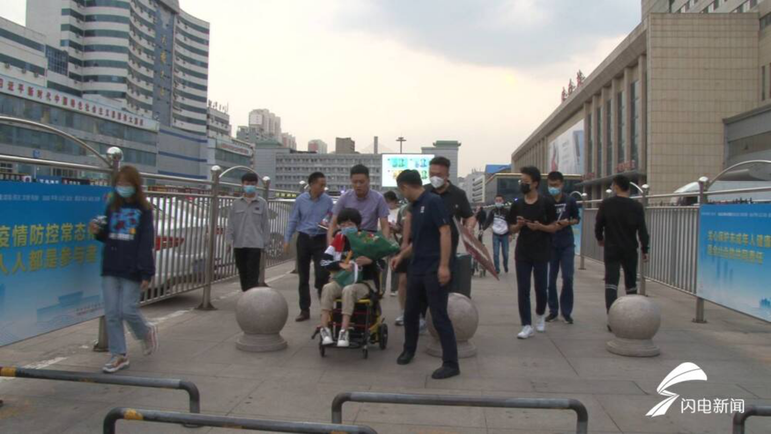齐鲁网·闪电新闻9月28日讯“你说在哪个地方快,咱就在哪里下车!”快到济南火车站的时候,车上的迎新老师站起来,往车窗外面张望着。他们要接的是一位来自沈阳的小天使刘蕊,她是山东财经大学2020级的新生,因从小患有运动神经元疾病,行走不方便,需要长时间坐在轮椅上面。