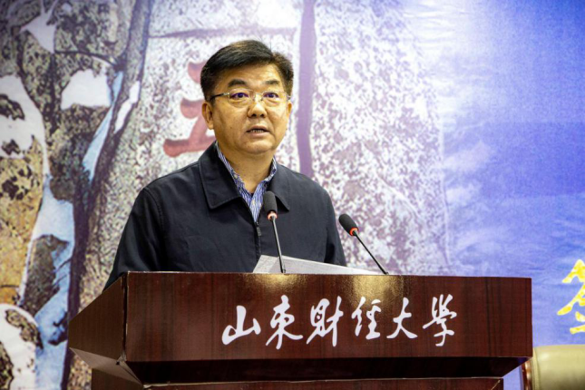 王邵军代表学校向出席仪式的各位嘉宾表示热烈欢迎,向关心支持山东财经大学发展的各位朋友表示感谢。他表示,山东是儒家思想的发源地,山东财经大学根植齐鲁大地,儒商文化研究基础扎实,学科背景多元。学校高度重视培养学生文商并举的能力,在儒商文化的浸润下,培养了大批追求“仁义”、“诚信”、“和合”之道经济管理人才。他强调,成立山东财经大学儒商文化研究院是山东财经大学与山东儒商研究会强强联合的创举,是弘扬中国传统商业文化的有益尝试,对于推动中华优秀传统文化创造性转化、创新性发展具有重要意义。他希望,在山东儒商研究会的指导下,儒商文化研究院要不断探索儒学新型研究模式,整理好、研究好、弘扬好儒商文化,深入探讨儒商文化内涵和时代价值,将论文写在中华大地上,写在齐鲁大地上,写在企业家需求上,多出成果,出好成果,全力服务国家及山东经济高质量发展。
