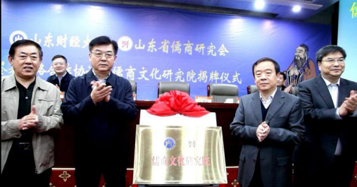 赵忠秀和山东省儒商研究会副会长宋玉山代表双方签署山东财经大学与山东省儒商研究会战略协议;许立全、王邵军、赵忠秀、宋玉山共同为“儒商文化研究院”揭牌,与会人员共同见证了儒商文化研究院的正式成立;张书学宣读了儒商文化研究院名誉院长、院长、执行院长名单。其中,我院院长孙丽君担任儒商文化研究院的执行院长。