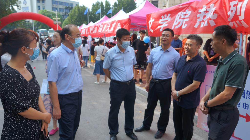 2021年9月14日下午3:00,山东财经大学副校长张培国、陶虎、学工部部长王剑、保卫处处长徐明春、学工部副部长张贞梅、校团委副书记甘超、保卫处副处长辛雪峰莅临我院迎新现场,详细了解迎新情况。随后,我院党委书记姜竹青、副书记李开传、团委书记沙林斌、21级辅导员鞠洪伟陪同校领导一同视察舜耕校区学生住宿情况。