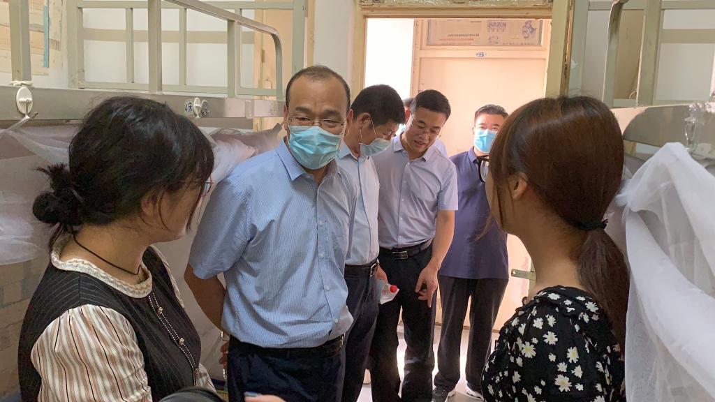 随后,校领导进入舜耕校区我院学生宿舍6号楼,实地视察学生住宿情况及宿舍修缮情况。在232宿舍里,张培国副校长、陶虎副校长亲切关照学生生活情况,询问宿舍内学生的生活习惯、家乡所在,关心全新投入使用的空调、浴室等宿舍新设施是否便捷。同时,校领导提醒学生之间多多交流、互帮互助,尽快适应大学生活,享受舜耕校区的优美环境。