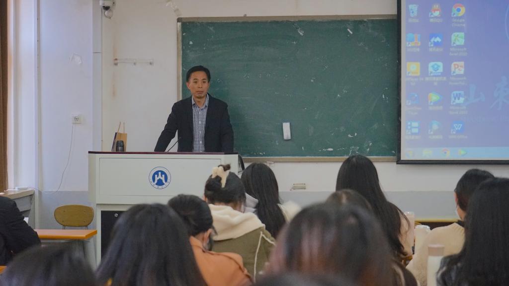 2021年11月4日下午,我院在舜耕校区1104教室开展党课教育活动。此次党课由学院党委副书记李开传主讲,我院49名党员发展对象参加。
