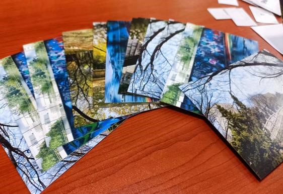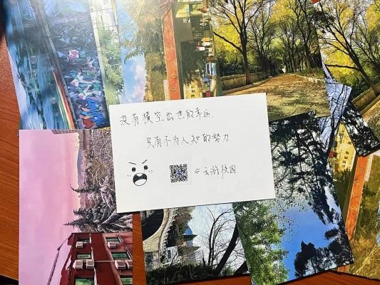 明信片主要由三部分构成。背面的风景图均为舜耕校区的景色,由学院学子拍摄,这一设计让新生提前一睹校园风光、饱览舜耕景色。正面是学长学姐亲笔写下的对学弟学妹的美好祝福,每张明信片都有不同的祝福语,字里行间都流露出文学与新闻传播学院大家庭对新生到来的喜悦之情。除此之外,明信片的正面还印有“财大文院”的二维码,扫描即可云游校园,沉浸式观看学校全貌。