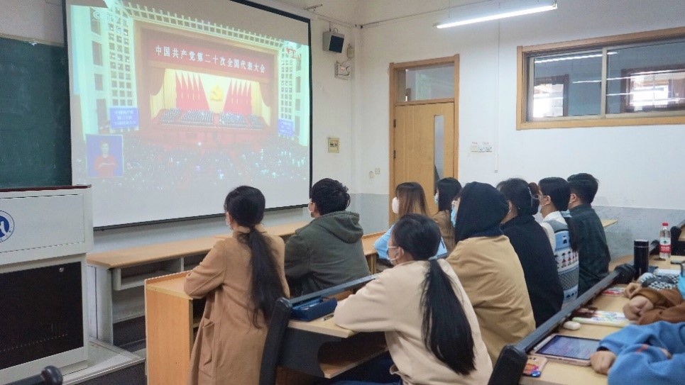 学院党委热切关注大会盛况,开展组织化学习,以集中与自主结合的方式收看收听了大会:学院党委领导班子及各党支部书记于9301会议室、全体学生党员及预备党员于1307教室、全院学生于宿舍进行观看。同时,学校在各个场馆通过电视、网络等渠道播放开幕会盛况。