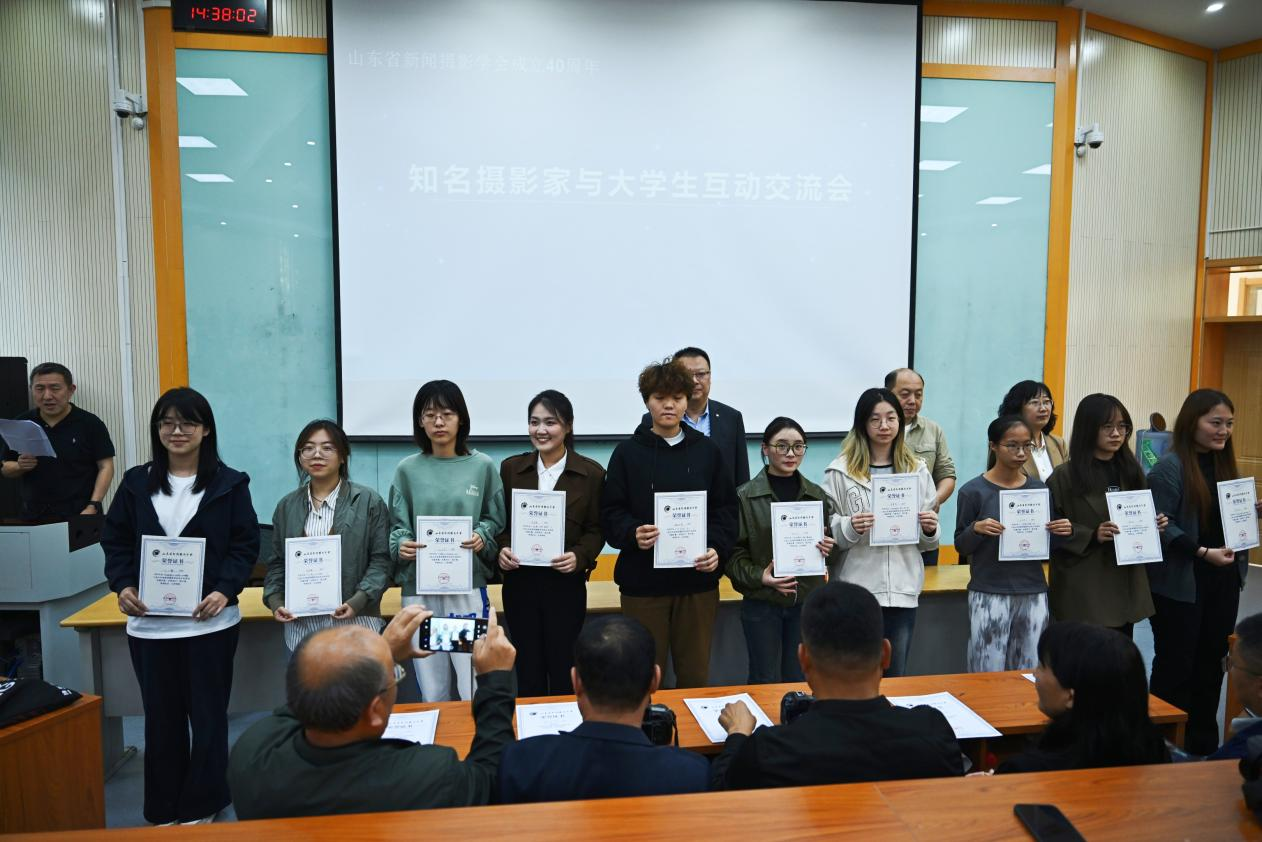 山东省新闻摄影学会副会长兼秘书长刘军、文学与新闻传播学院党委书记杜啸尘、新闻系副主任高潇为作品入展“光耀齐鲁·光影财大”图片展的学生颁发证书。同学们纷纷表示,通过参加本次活动体会到了摄影的魅力,也感受到了新闻摄影的责任感,未来将努力学习,提高新闻摄影水平,为山东新闻摄影事业的发展贡献力量。