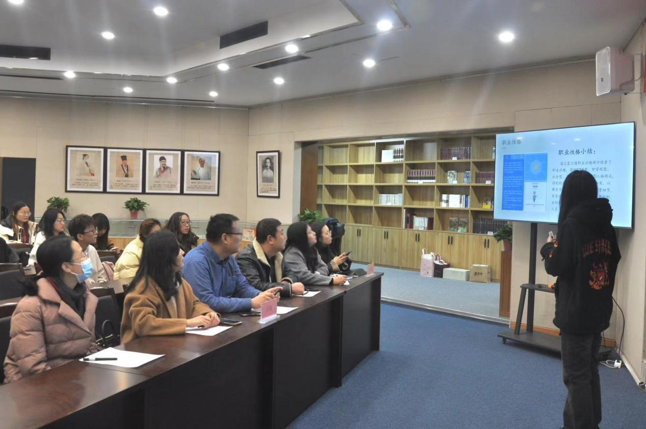 大赛分为成长赛道与就业赛道两个方向,成长赛道主要考察学生规划的科学性与职业目标的成长过程,就业赛道主要考察学生的实战能力、发展路径和适应能力。在主题陈述环节,同学们从自我认识、环境分析、未来发展、评估调整等方面进行演讲,深入分析了自己的职业发展目标,并从可操作性和现实意义等方面进行了细致阐述。