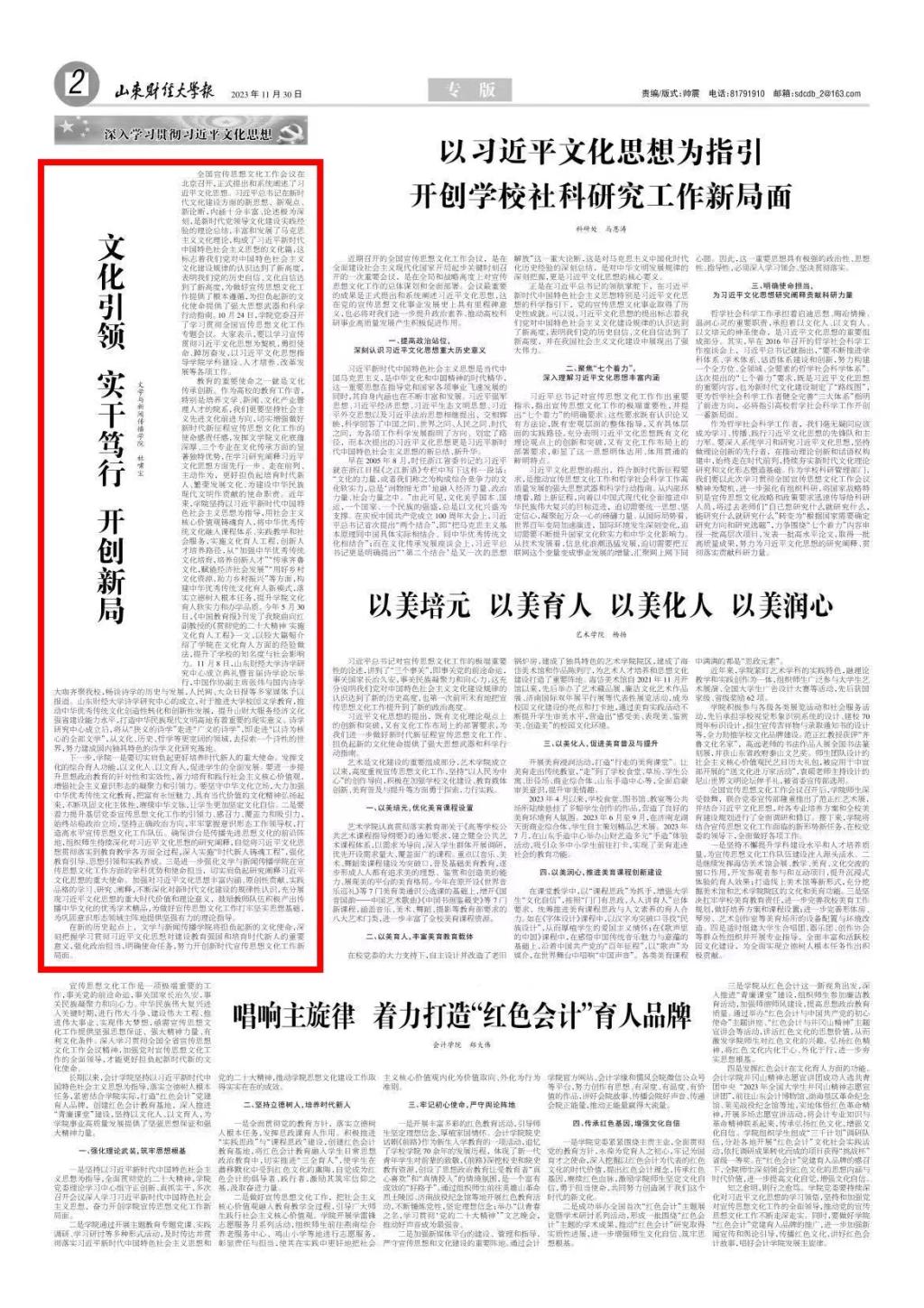 近日,山东财经大学报刊登了文学与新闻传播学院党委书记杜啸尘在学校宣传思想文化工作专题会议的讲话。