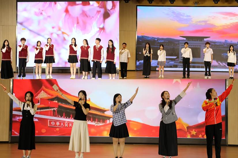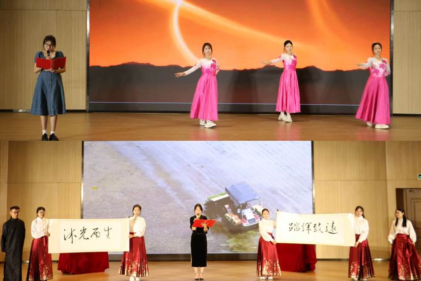 诵读会表演形式丰富,同学们以朗诵、情景表演、诗词讲解等形式演绎着文学作品的独特魅力。《我的南方和北方》《赤壁的火与月:在历史长河中打捞生命的坐标》《千年回响,盛世华章》跨越时空,展现了青年学子对祖国的热爱和对未来的憧憬;《闪耀吧!青春的火光》《光的赞歌》《黄河》《向太阳》热烈激昂,再现了历史长河中青年的奋斗历程;《那一年,中国青年正十八》《薪火长歌》无尽豪迈,带领观众感受青春的力量和热血的温度。最后全体演员合唱《光亮》,以婉转的旋律和饱含深情的歌声,点燃了每一位观众心中对于青春的向往与憧憬。
