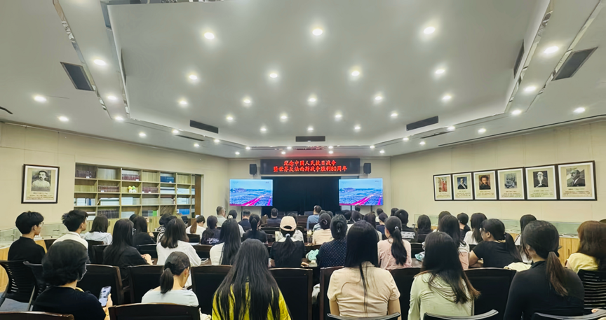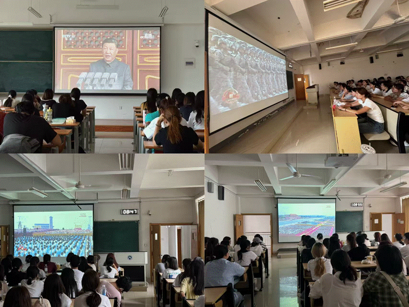 9月3日上午,纪念中国人民抗日战争暨世界反法西斯战争胜利80周年大会在北京天安门广场隆重举行,我院师生在诗学研究中心、教室集中观看直播,现场气氛庄重热烈,爱国情怀与民族自豪感高涨。