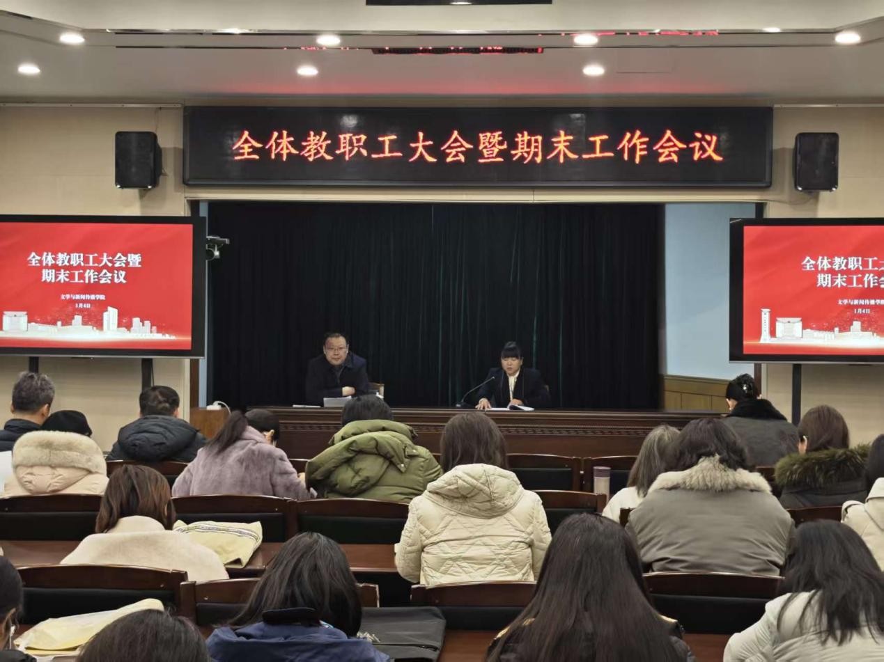 1月4日上午,文学与新闻传播学院召开全体教职工大会暨期末工作会议。学院领导班子成员及全体教职工参加会议。