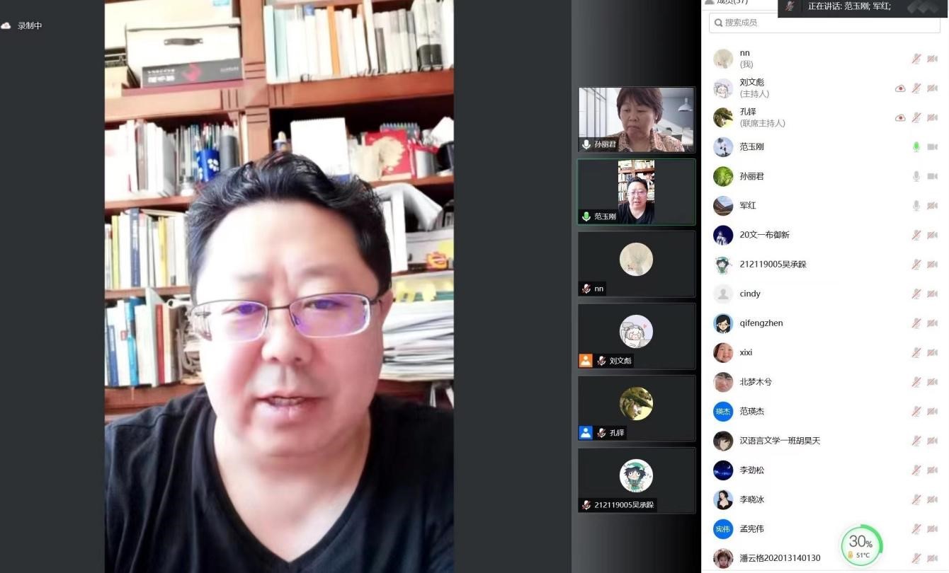 为实现全方位育人,推进课程美育体系建设,提升师生美学素养与理论水平,值山东财经大学建校70周年暨合并建校10周年校庆之际,我院于2022年6月5日举办线上校庆名家讲坛第三期 :“美学思想的肇端与审美意蕴的生成——古希腊早期美学思想史的一种解读”。本次讲座邀请山东大学文艺美学中心特聘教授、中央党校文史部教授范玉刚主讲,我院部分师生集体线上参与了此次讲座,讲座由院长孙丽君教授主持。