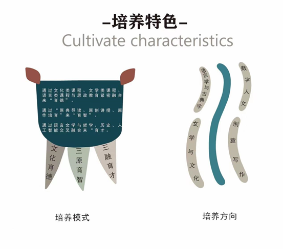培养目标五:培养能够服务中华文化复兴、文化强国、数字人文、文化数字化等国家文化战略需求,能够对传统文化进行挖掘、整理、研究、生产与传播,具备汉语言、文学与哲学、历史、计算机相互交叉融合的创新思维,能够推动中华文化创造性转化和创新性发展,具备中文信息处理能力,能满足数字人文时代需求的“新文科”综合素养的交叉复合型高级专门人才。