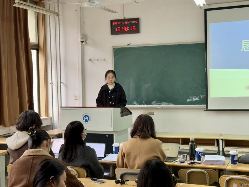 10月24日,我院2024级新闻与传播专硕学位论文中期检查在舜耕校区2208顺利举行。新闻系郑燕教授,章妮教授,韩军教授,王爱副教授,张瑞瑶副教授组成检查小组。中期检查以“小答辩”形式进行,组长郑燕主持会议,贾瑞欣老师任答辩秘书。2025级全体新传研究生到场旁听。