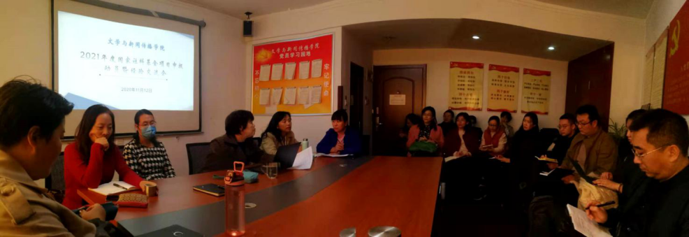 11月12日下午,我院在学院会议室召开2021年度国家社科基金项目申报动员暨经验交流会。院长孙丽君出席会议并做动员讲话,中文系李秀花教授、文化产业管理系主任李军红教授、新闻系主任郑燕副教授,院长孙丽君教授依次发言分享申报经验。学院拟申报2021年度国家社科基金项目教师参加会议。会议由通识教学部主任、院长助理王丽霞主持。